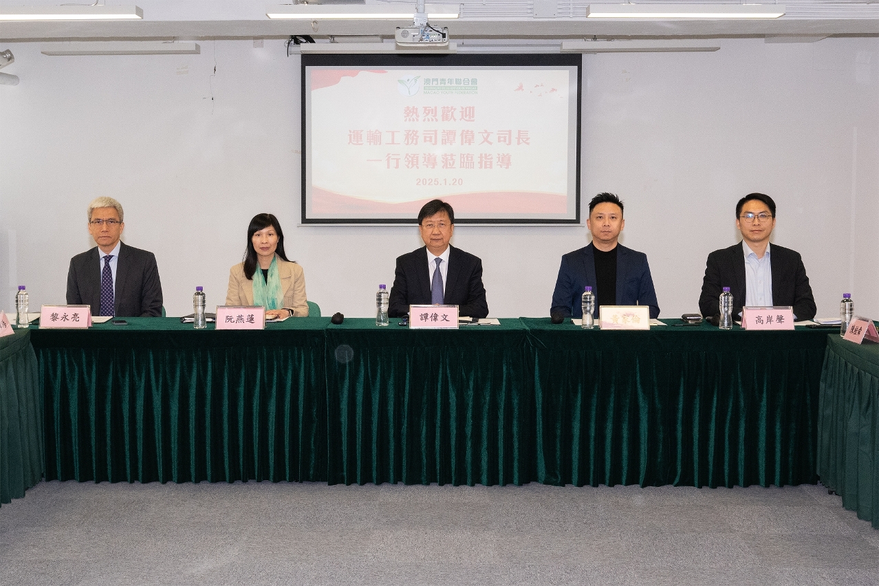 運輸工務司司長譚偉文今(20)日繼續拜訪社團,下午到訪澳門青年聯合會並舉行座談會,就編製運輸工務範疇本年度施政方針聽取意見和建議。