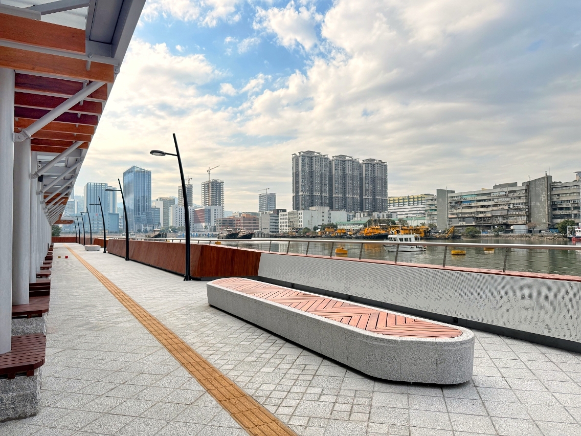 市政署邀筷子基坊會及青洲坊會代表到現場實地介紹休憩區的設施及佈局,並聽取意見。總面積達約2,166平方米的海濱休憩區,設置健身區、兒童互動區、觀景平台等多功能休閒區等,並增加綠化元素,擴闊現有步行環境,透過花圃建設分隔休憩區和行車道路的綠色屏障,整體優化筷子基北灣的休憩設施,為區內居民提供優質戶外休憩空間。