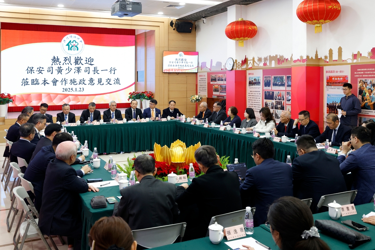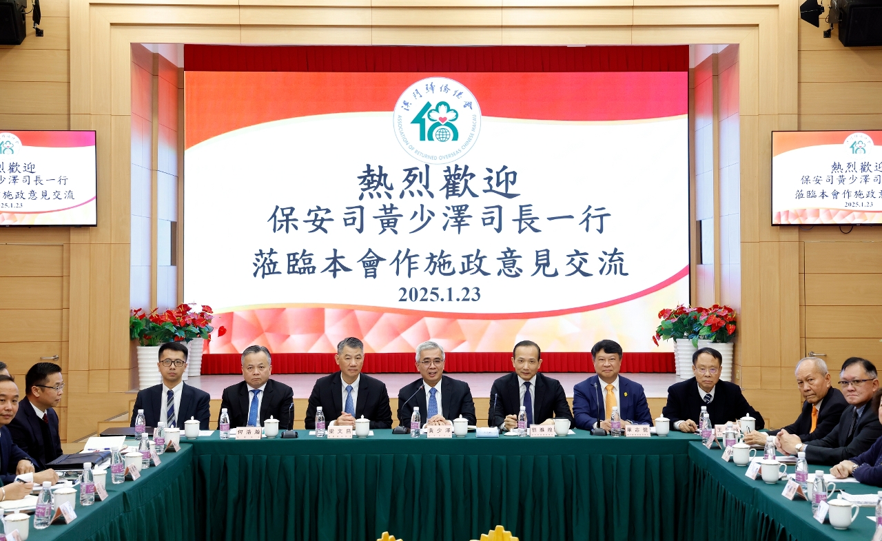 保安司司長黃少澤今(23)日拜訪澳門歸僑總會並舉行座談,就編製保安範疇2025年度施政方針聽取意見和建議。