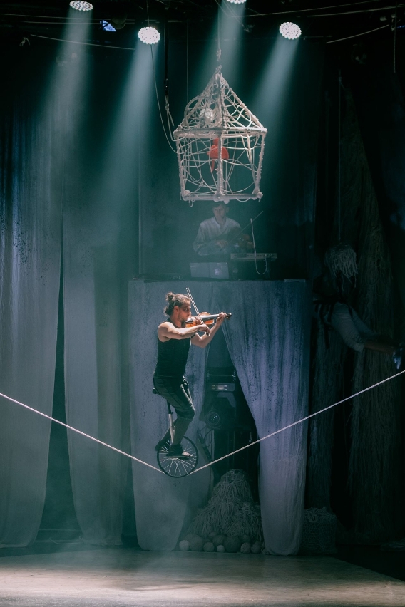 《編織和平》的創作靈感來自突破界限的欲望,將團結、和平與期望的主題與棉線、繩結結合,舞台上五位雜技演員以驚人的肢體力量挑戰萬有引力,優雅展現飛躍、旋轉等極限動作,結合靈感來自編織針碰撞時輕響的現場音樂效果,恍如一幅動態畫卷。該劇是心之馬戲團的代表作,亦是其最受歡迎的作品,凝聚了馬戲團勇於創新的精神。