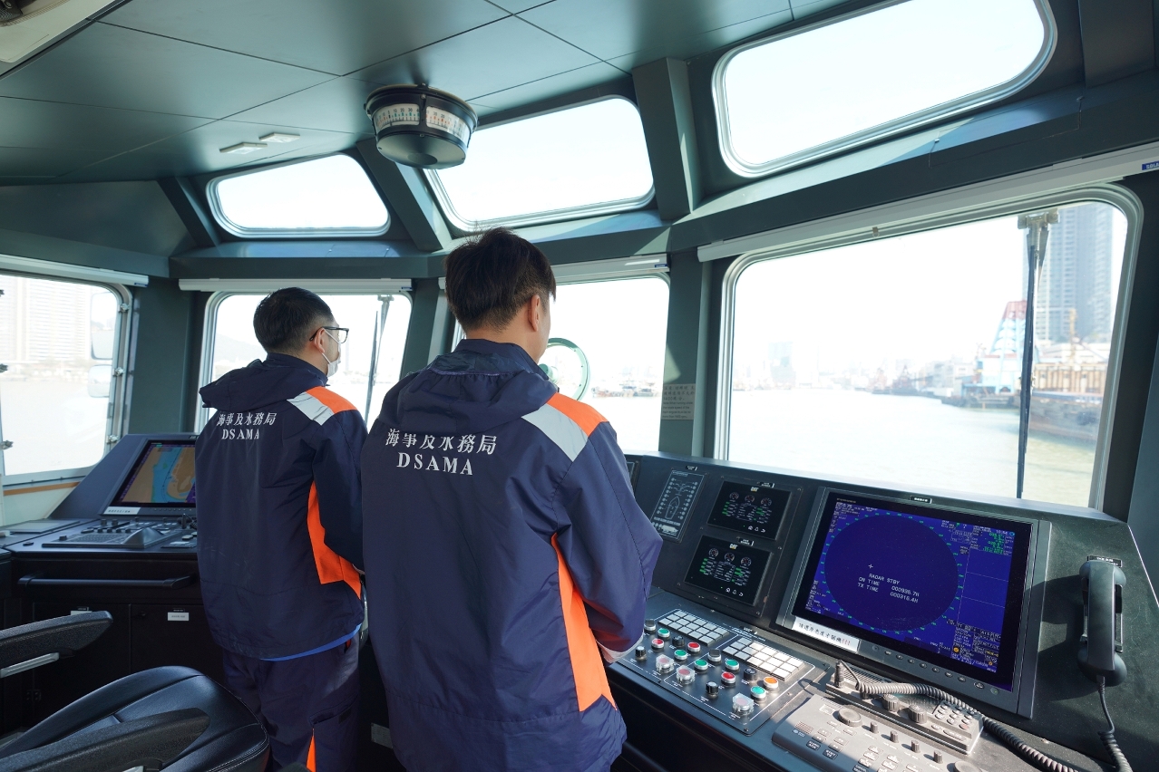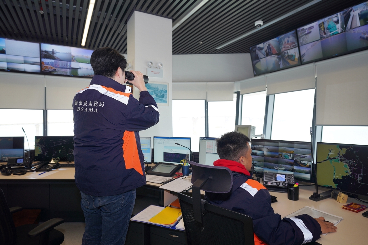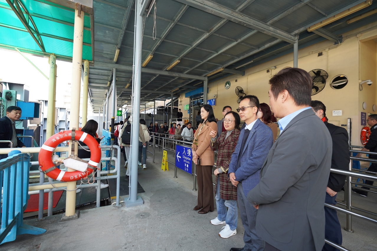 新春假期經海上客運出行的市民和旅客增多,海事及水務局加派人手於各客運碼頭駐守和加強秩序管理,並要求船公司於高峰時段適當加開航班。黃穗文一行巡視客運碼頭的運作情況,並視察24小時運作的船舶交通管理中心,了解客船進出港及航道管理情況,各海上交通口岸通關暢順,碼頭秩序良好。