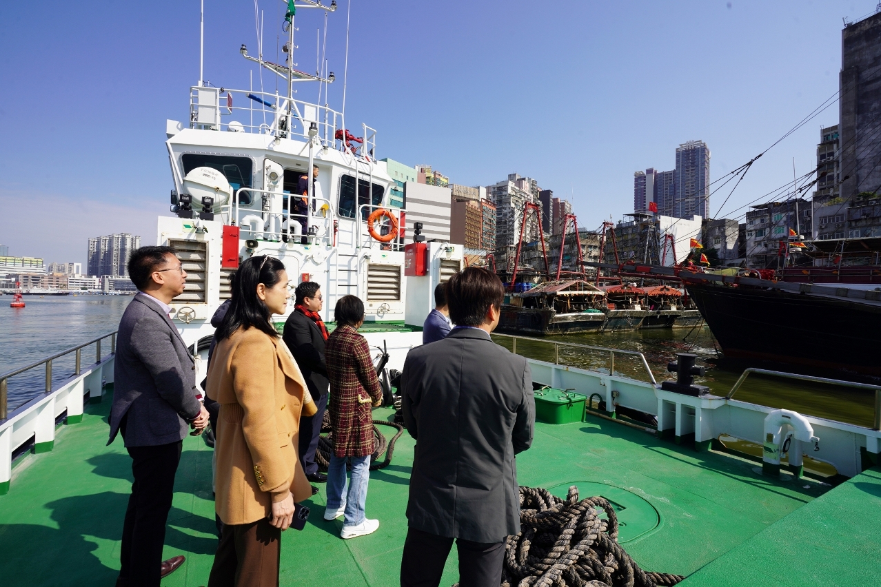 春節期間,漁船返澳度歲,目前有約70艘漁船在內港停泊,海事及水務局加派拖輪在內港一帶24小時駐守,加強應變部署及緊急救援能力。黃穗文一行亦巡視了內港錨地的漁船停泊情況和駐守的公務船,感謝值班人員緊守崗位,並勉勵人員做好戒備工作,保障本澳的海上安全。