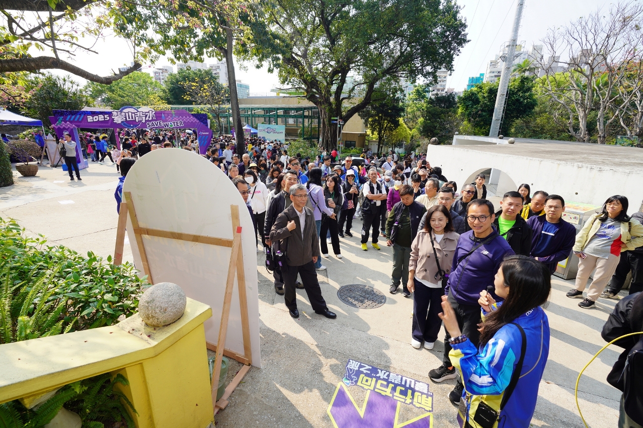 海事及水務局第九度舉辦“攀山背水”體驗活動,今年活動設有“2025攀山背水小程序”供市民預先參與線上節水任務,並鼓勵市民帶動身邊親友,組隊到活動現場參與揹水行山體驗、水資源問答挑戰和以再生水為主題的趣味遊戲攤位,現場亦特設“打卡區”供市民拍照留念和分享到社交平台。活動吸引眾多市民參與,當中有不少親子,藉著活動向孩子教育節水惜水的重要性,現場十分熱鬧,充滿歡聲笑語,透過有趣方式成功教育市民水資源知識,並提高了節水意識。海事及水務局感謝市民踴躍參與,一同揹水起行,宣揚節水信息。