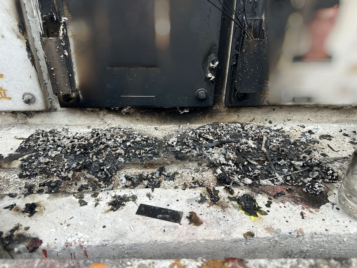 新西洋墳場有骨灰箱石碑被燻黑 市政署報警跟進