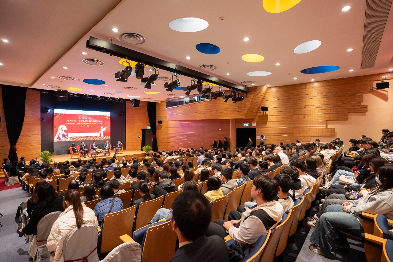 澳門旅遊大學在3月17日舉行“全國人大、全國政協會議”精神分享會,邀請澳區全國人大代表團團長、澳門歸僑總會永遠會長劉藝良,全國政協委員、澳門立法會議員高錦輝,全國政協委員、澳門旅遊大學發展基金會信託委員會主席及校董會副主席呂耀東,以及全國政協委員、澳門旅遊大學校長黃竹君擔任主講嘉賓。四位嘉賓圍繞“兩會”熱點話題展開深入分享,鼓勵學生肩負起新時代“一國兩制”實踐的重要使命,積極融入國家發展大局,並努力講好“中國故事”。