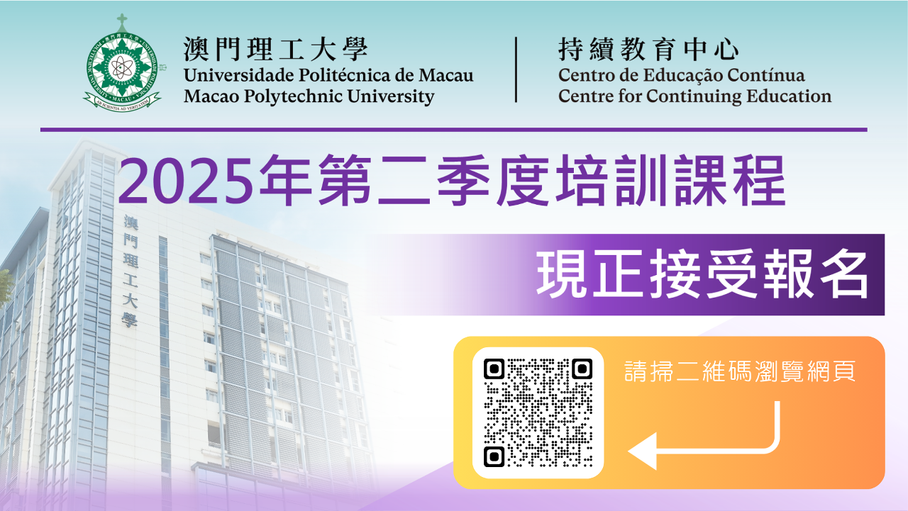 為回應澳門經濟多元產業發展的人才需要,澳門理工大學持續教育中心於2025年第二季度推出40多項專業實務培訓課程,範疇涵蓋公共行政、社會工作、商業應用及企業管理、語言傳意、科技及工程、旅遊與會展、護理、青少年培養以及藝術及設計等領域,致力培養專業複合型人才。課程現正接受報名,額滿即止。