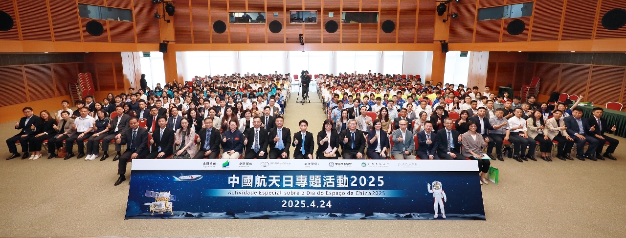 2025年4月24日是第十個 “中國航天日” 。由教育及青年發展局主辦,澳門科學技術協進會承辦,澳門科學館、中國宇航學會及澳門科技大學支持的 “中國航天日專題活動” 於4月24日上午在澳門科學館啟動,讓澳門青年學生了解國家航天事業和科普工作的開展情況,培養青年學生的科學探索和創新精神。