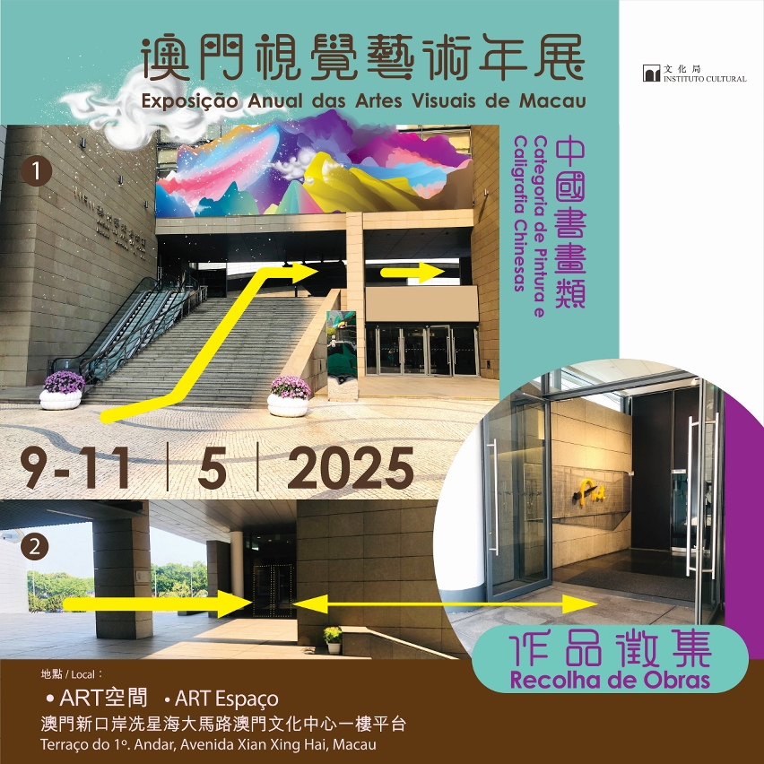 由文化局主辦之2025年“澳門視覺藝術年展——中國書畫類”將於5月9日至11日進行收件,收件時間為上午10時至晚上7時(中午照常辦公),參加者可將已填妥並簽署的報名表、澳門居民身份證副本及參展作品,送交至澳門文化中心一樓平台“•ART空間”。