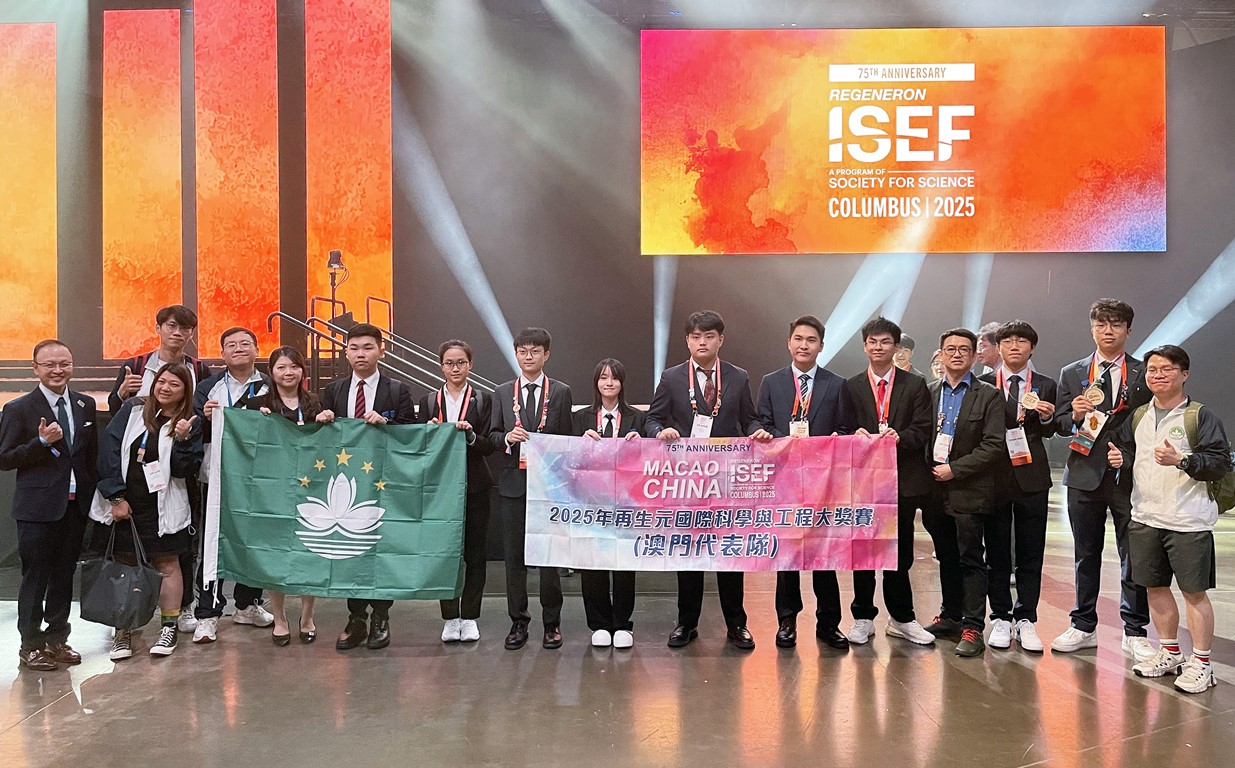 “再生元國際科學與工程大獎賽”(Regeneron International Science and Engineering Fair)是一項具有70多年歷史的國際性青少年科學研究項目比賽,競賽學科涵蓋了所有自然科學學科和部分社會科學的內容,被稱為中學生科學競賽的“世界盃”或“奧林匹克”。是項比賽雲集全球70多個國家和地區超過1,800名學界精英參與。澳門學界代表隊能夠在全球眾多參賽者中脫穎而出,證明澳門學生在科技創新領域的表現出色,亦充分體現澳門“以賽促學、以賽育才”的教育方針成效。