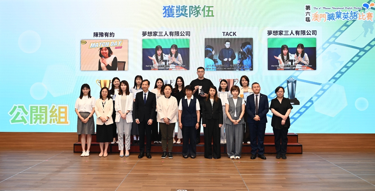 澳門生產力暨科技轉移中心舉辦的“第六屆澳門職業英語比賽”圓滿落幕,選出學生組和公開組的金、銀、銅及創意獎,頒獎典禮於5月28日在澳門科學館會議中心舉行。賽事吸引了20間本澳中學及大專院校學生參與,另外還有教育界、零售及旅遊等行業人員參加,比賽旨在培養具備國際視野的複合型人才。