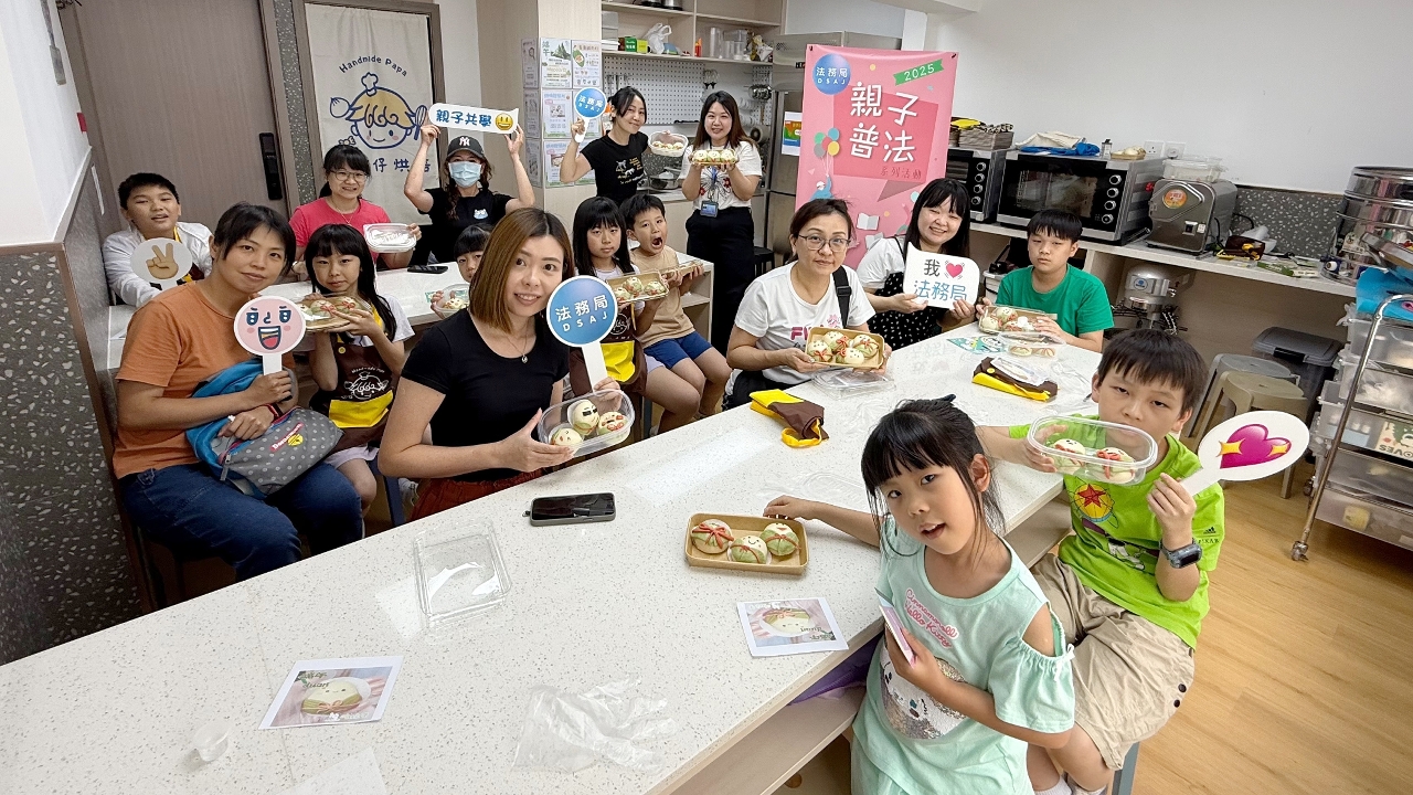 法務局日前舉辦“2025親子普法系列活動”之“與法‘童’在—親子迷你烘焙工作坊 ”,透過互動講解及有獎問答,向親子們推廣《澳門基本法》的知識。同時,也安排了親子們製作端午粽子造型豆沙包,藉以推動親子們認識中國傳統節日,弘揚中華文化。