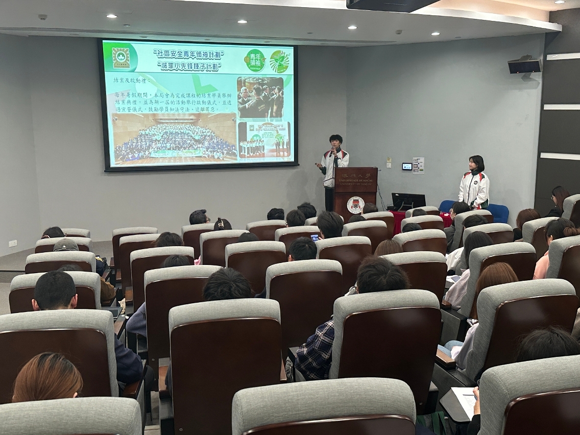 招募期間,司警局關注少年組人員先後走訪本澳各高等院校和中學,向同學們詳細介紹兩項青年計劃的宗旨、培訓課程內容及歷年成果,共接觸逾2,800名學生。