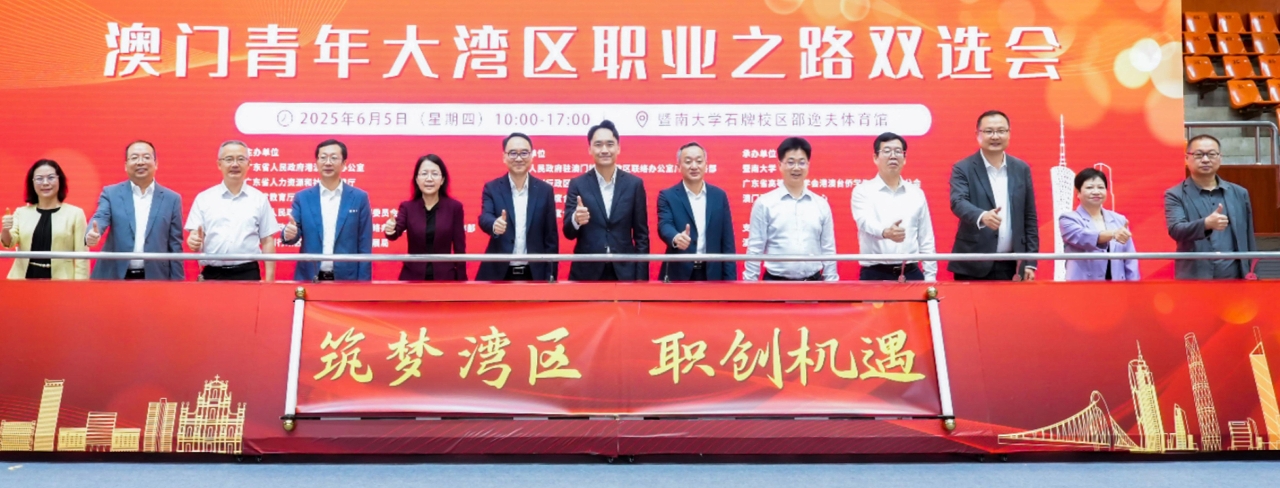 雙選會(廣州專場)於6月5日在廣州暨南大學舉行。澳門特區政府教育及青年發展局局長龔志明、中央人民政府駐澳門特別行政區聯絡辦公室教育與青年工作部部長李雪飛、暨南大學黨委書記孫彧、廣東省人民政府港澳事務辦公室副主任龍廣艷、廣東省人力資源和社會保障廳副廳長謝忠保、廣東省教育廳副廳長馮偉、廣東省人民政府國有資產監督管理委員會副主任賀宇、中央人民政府駐澳門特別行政區聯絡辦公室廣東聯絡部副部長任鐵健、澳門特區政府社會文化司司長辦公室顧問秦斌、澳門特區政府勞工事務局副局長陳子慧、橫琴合作區民生事務局副局長許鳳梅、澳門青年發展服務中心總幹事黃永曦等出席開幕儀式。