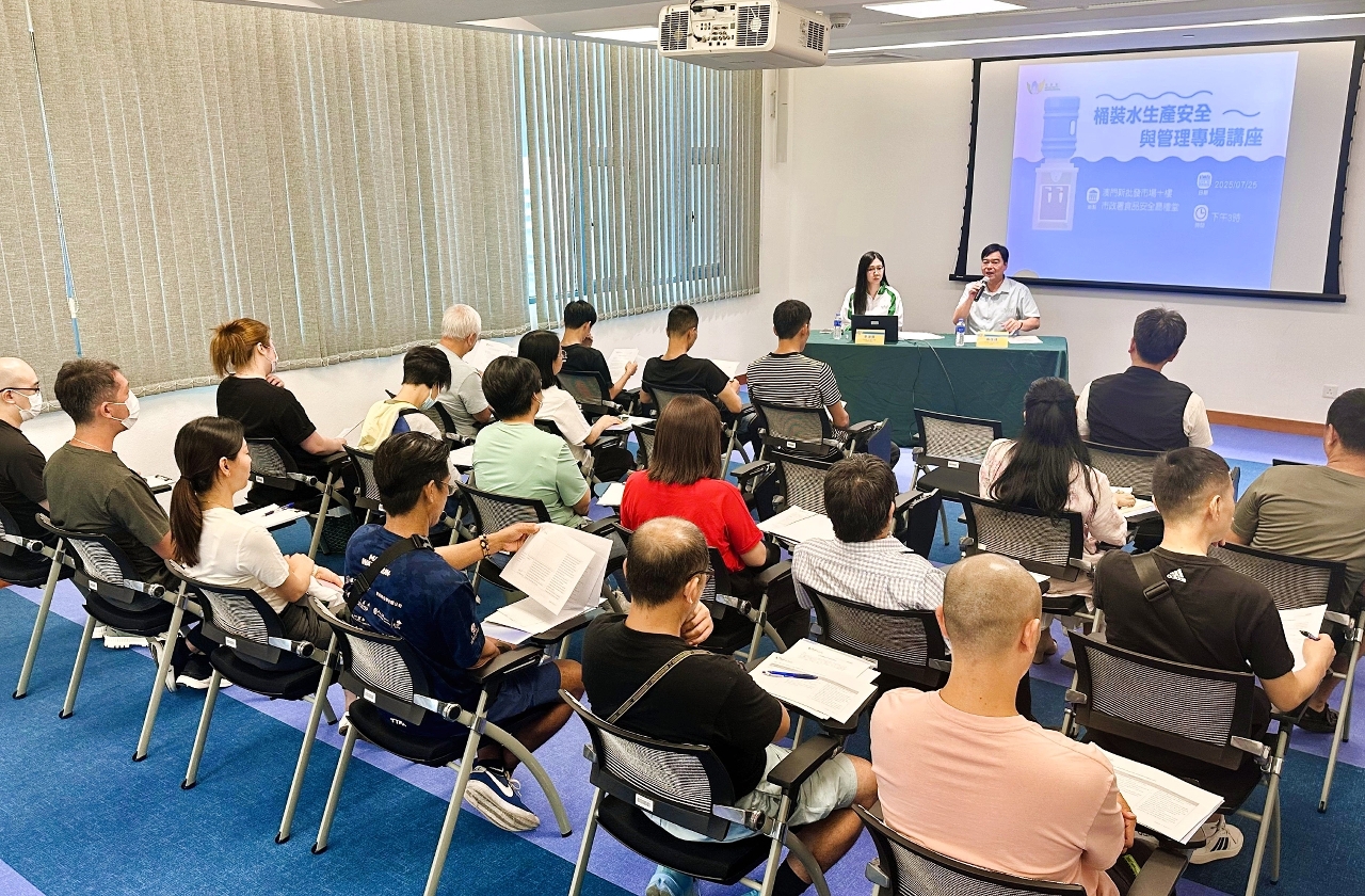 市政署今(25日)與全澳飲用水廠舉行座談會,就《瓶裝飲用水之一般衛生質量指引》等一系列衛生指引作講解,並和業界進行交流。重申廠方必須嚴格遵守各項指引中對廠房衛生、源水處理、產品檢驗、包裝、貯存、運輸等各個環節的風險隱患及品質管控的要求,敦促企業全面落實有效的內部食安管理制度,切實保障消費者飲用安全。