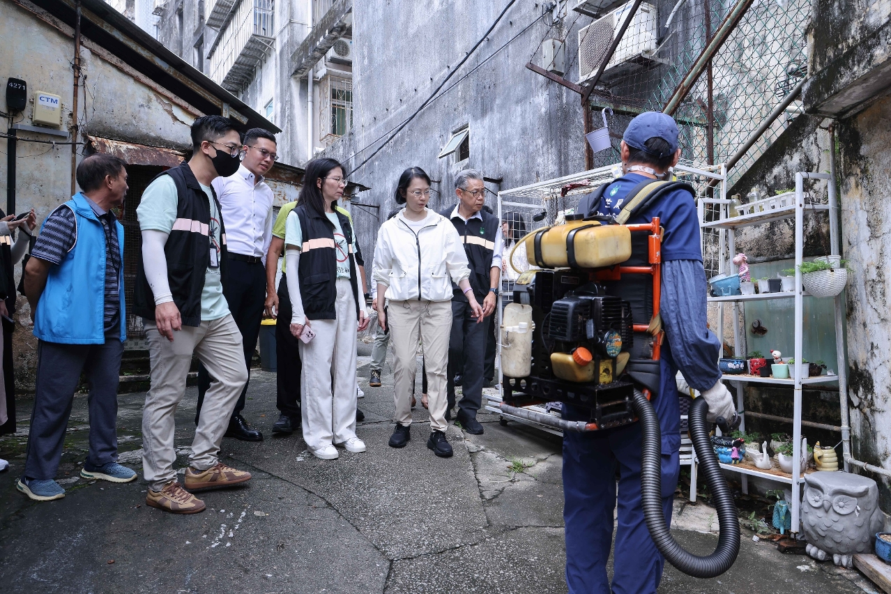 鑑於鄰近地區蚊媒傳播疾病明顯增多,本澳人員往來頻繁,傳入本澳風險增高,加上本澳今年已錄得5例輸入性基孔肯雅熱病例和1例本地登革熱病例,衛生局及市政署已對相關風險區域持續加強孳生源巡查及化學滅蚊工作。今(29)日社會文化司司長柯嵐、衛生局代局長郭昌宇、市政署市政管理委員會委員杜淑儀、衛生局疾病預防及控制中心主任梁亦好、市政署環境衛生及執照廳廳長馮惠星及公共建設局代表等實地檢查了涉及地盤、公園及衛生黑點等的滅蚊工作。
