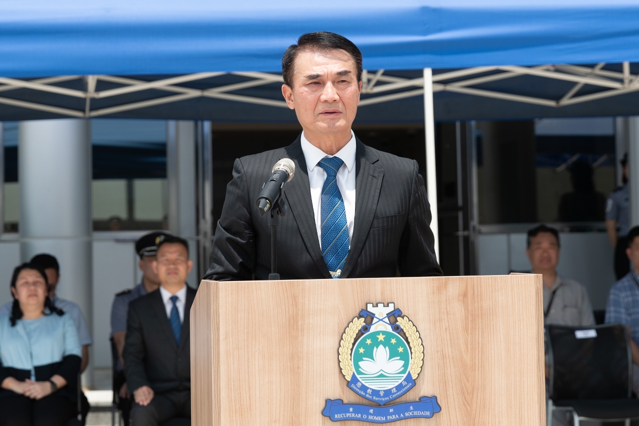 程况明局長致辭時表示,獄警人員作為監獄的執法者,一直以來,克盡己任,盡忠職守,為確保監獄安全及有效履行懲教職責作出了不懈努力和奉獻。55名獄警生力軍,不僅有助舒緩獄警人手緊張的情況,亦令獄警隊伍進一步壯大和更有活力。期望新獄警在日後工作中實踐所學,不懼挑戰、積極向上、忠誠盡責、廉潔無私地履行獄警職責,任何時候皆展現出獄警人員的專業素養和良好形象,維護獄警隊伍的尊嚴和聲譽,成為一名優秀的獄警人員。懲教工作任重而道遠,其不僅肩負著維護法律威嚴和社會公平正義,以及預防犯罪的重要使命,亦承擔著協助在囚人改過自新、重建新生的責任。懲教管理局將繼續全力貫徹特區政府“奮發同行、持正革新”的施政理念和保安範疇的施政方針,秉持“主動警務”、“社區警務”、“公關警務”三個警務理念,堅定地履行法定職責,不斷提高懲教工作的專業性和管理水平,確保懲教設施安全,積極凝聚社會各方力量,協助在囚人和院生重返社會,減低重犯率,為建設“法治澳門”,維護社會祥和穩定作出應有的貢獻。