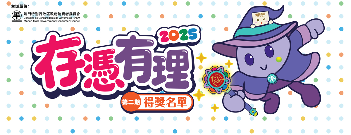 “存憑有理2025”第二期得獎名單已公佈於消委會網頁(https://www.consumer.gov.mo),消委會並將以電話短訊通知各得獎者,領獎時間由8月1日起至8月29日。