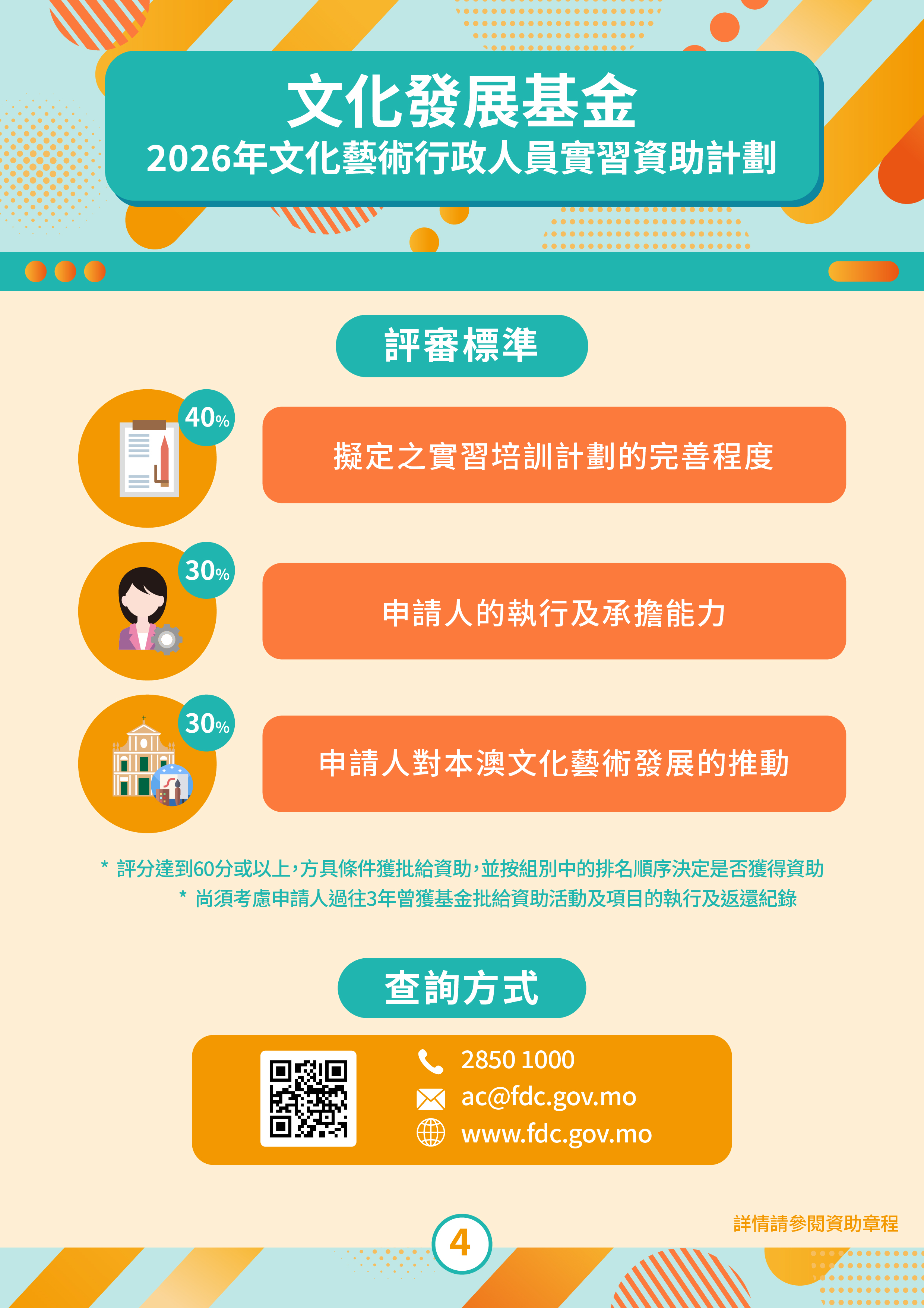 有意申請人可透過基金網頁(www.fdc.gov.mo)瀏覽申請詳情,如有疑問,歡迎致電2850 1000或電郵ac@fdc.gov.mo。