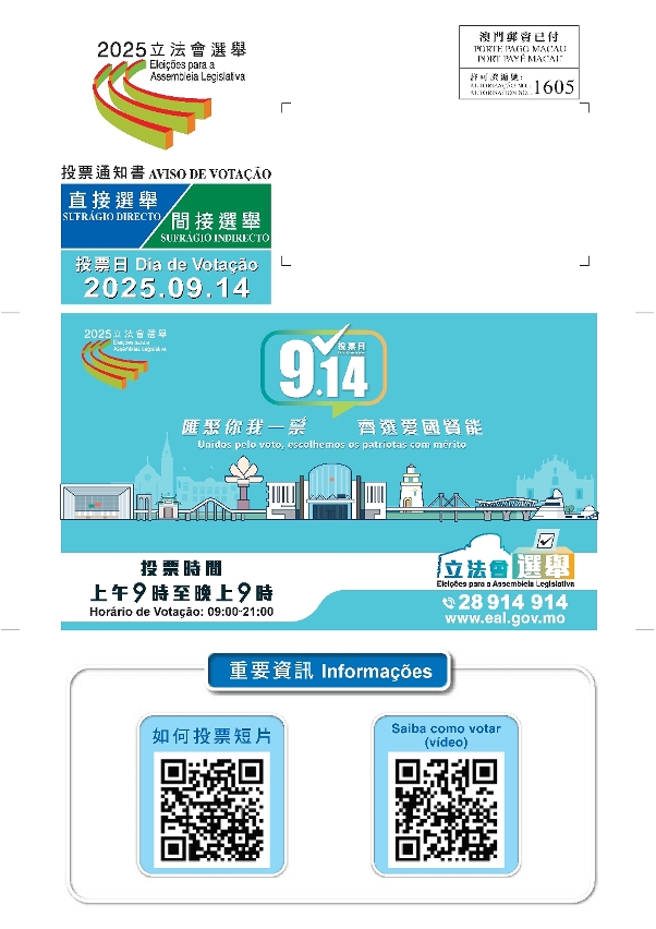 選民還可透過“一戶通”、立法會選舉網頁(www.eal.gov.mo)、選管會熱線(28 914 914)的語音系統、以及分佈於澳門、橫琴和粵港澳大灣區4市(廣州、珠海、中山及江門)共50個地點的自助服務機等多種方式,查詢自己所屬的投票站。