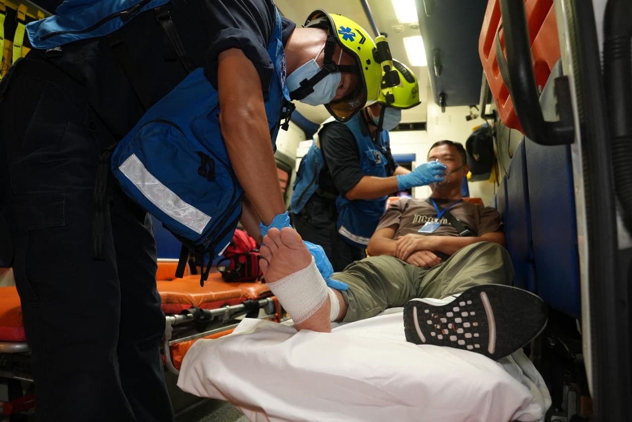 消防局接報後,立即派遣10輛緊急救援車輛及40名人員趕赴現場,展開拯救及滅火工作。同時聯同澳門保安部隊事務局、治安警察局及澳門海關等部門組成臨時聯合指揮站,並安排救護員於疏散集合點協助清點人數,以及透過檢傷分類對傷者進行護理。期間有3名人士於疏散時受傷,當中1名人士經護理後模擬送院。