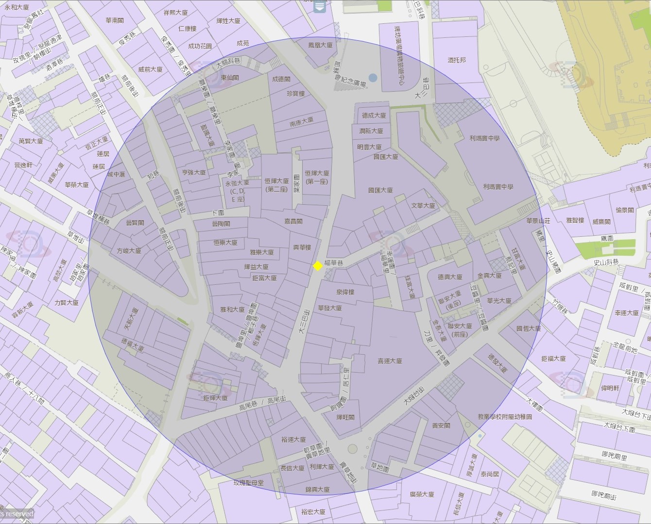 大三巴街附近風險區域100米半徑範圍