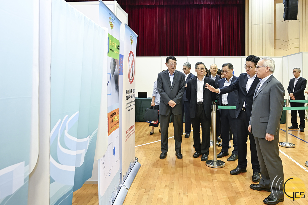 視察模擬票站前,選管會主席盛銳敏向行政長官匯報了選管會的工作。他表示,選管會成立以來,一直嚴格依照立法會選舉法規定,按選舉日程有序推進各項選務工作。現時全力為選舉日作好準備,設置投票站等系列工作進展良好,選務人員積極為投票程序進行演練測試。同時,選管會將持續宣傳,提升社會各界對選舉日的關注,並致力協調落實選舉當天多項便利措施,讓選民前往投票更便捷。