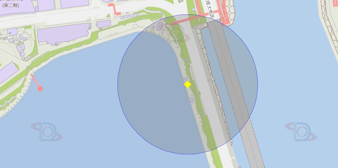 水塘公園(友誼大馬路)外圍附近風險區域100米半徑範圍