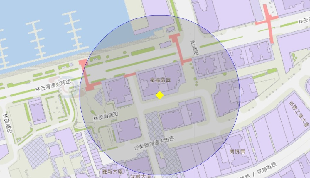 新濠天地員工車站(泉福翡翠-麥當勞附近)附近風險區域100米半徑範圍