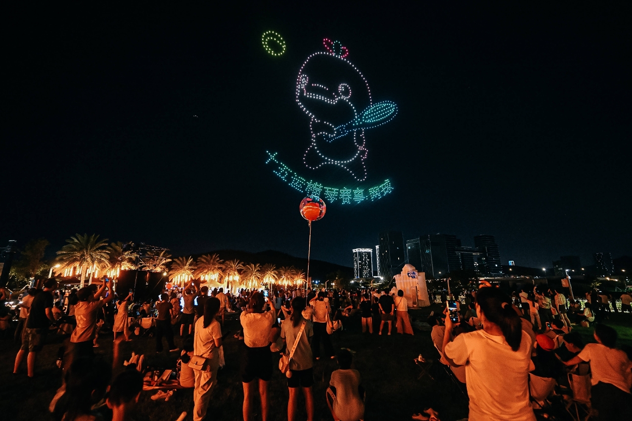 晚8時許,超700架無人機準時升空,在天上化作巨幅畫布,編織出一幅流動畫卷,相繼排列出中秋、十五運吉祥物等造型,以及對國家繁榮昌盛的祝福,將現場氣氛推向高潮。
