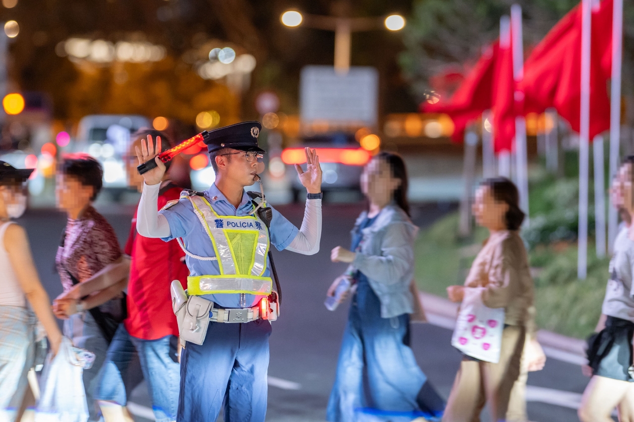 澳門國際煙花比賽匯演於10月1日及2日連續兩晚精彩上演,為確保活動順利進行,治安警察局針對各熱門觀賞點加強警力部署,不僅安排前線警員駐守巡邏,更抽調內勤人員支援前線警務,全力開展人流疏導及交通指引工作。
