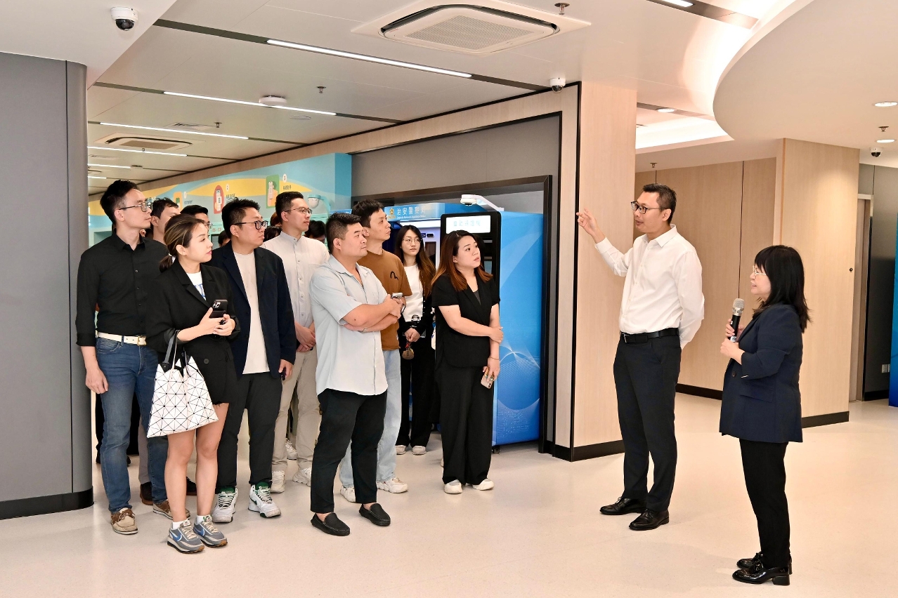 市政諮詢委員會委員及三區社區服務諮詢委員會委員等一行人,在工作人員帶領下,參觀慕拉士政府綜合服務中心的服務櫃檯、24小時自助服務中心、跨境自助服務專區、休息等候區、自助影印區、親子洗手間和哺乳室等設施設備,了解中心的日常運作及所提供的服務。
