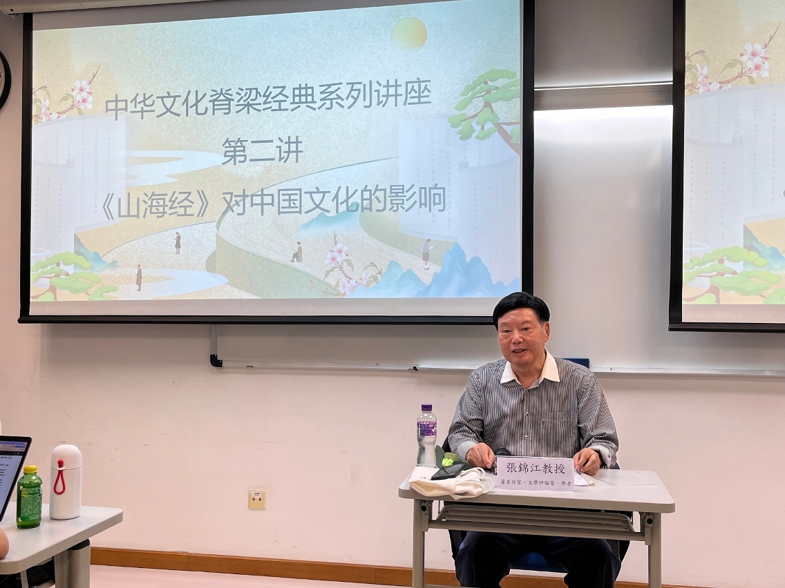 為提升澳門師生對中國文學的認識,弘揚中華優秀傳統文化,澳門大學學生事務部邀請著名作家、文學評論家及學者張錦江到澳門大學和澳門濠江中學進行《山海經》主題系列講座,吸引逾2,000名師生參與。