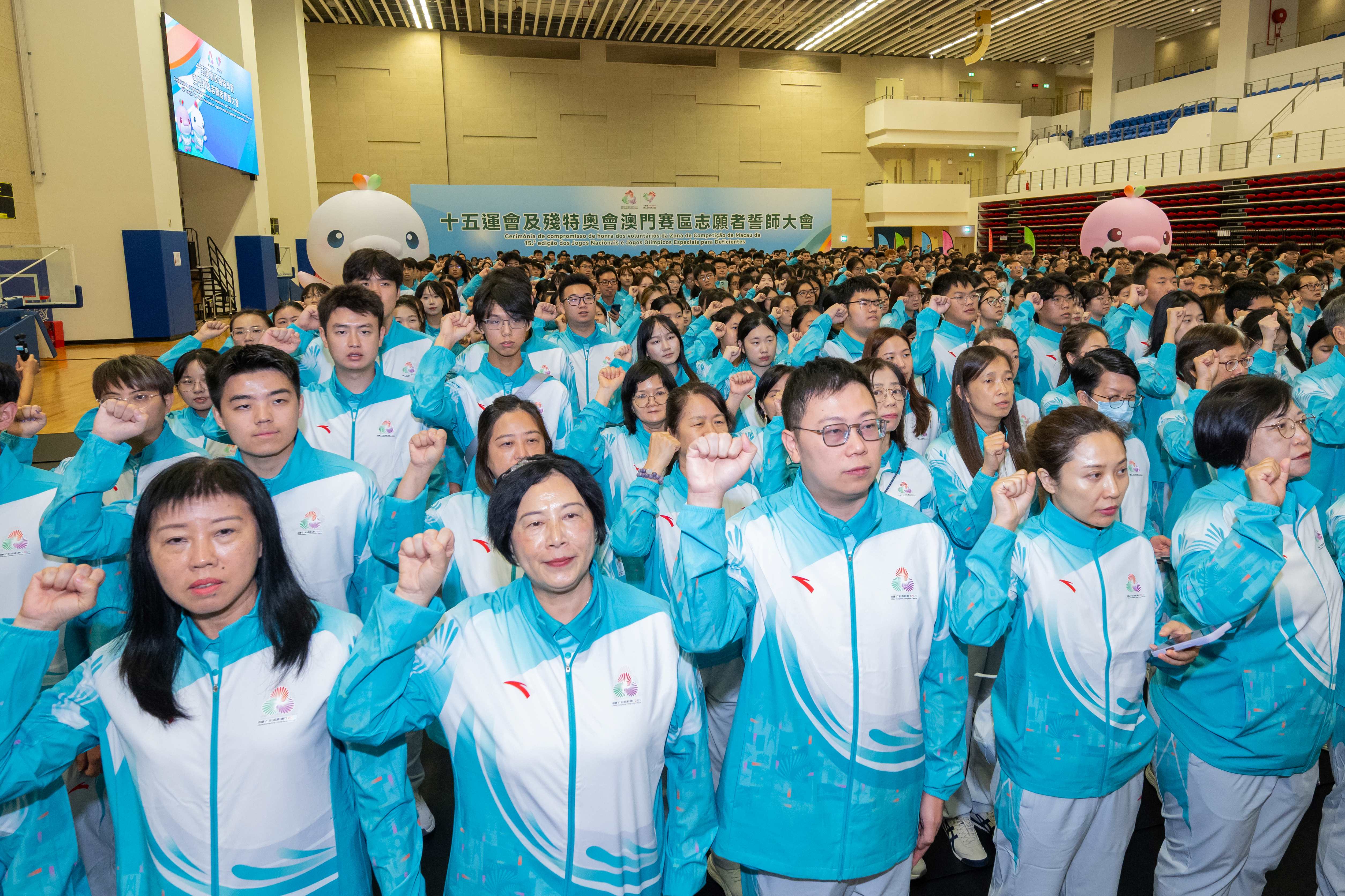 “十五運會及殘特奧會澳門體育代表團授旗儀式暨澳門賽區志願者誓師大會”今舉行