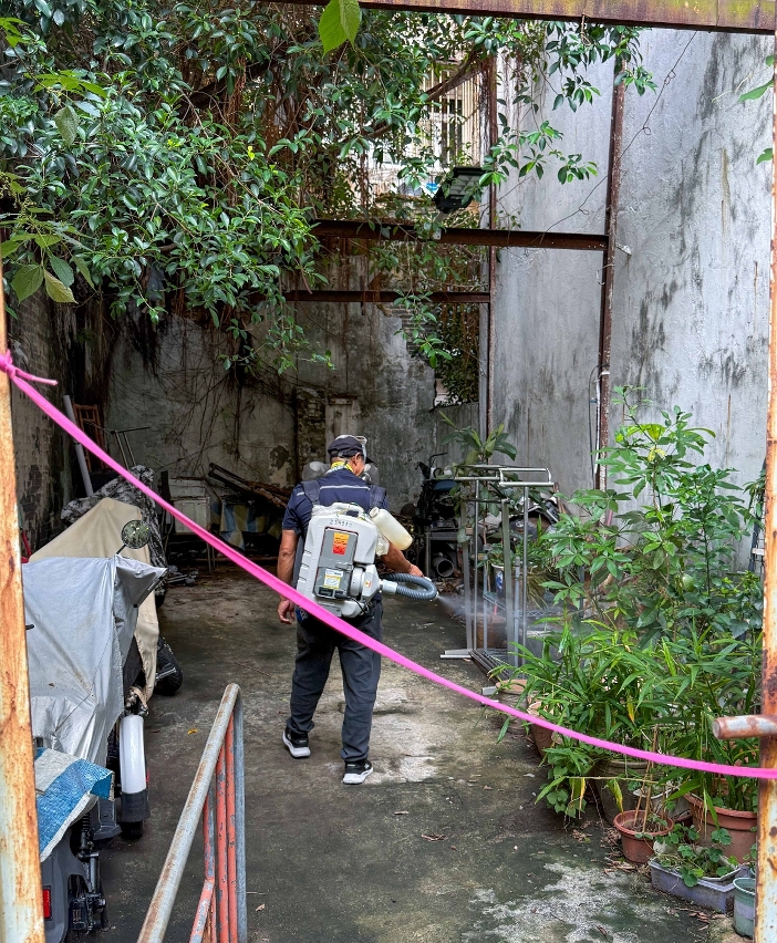因應近日接獲基孔肯雅熱及登革熱(下稱“雙熱”)確診病例報告,涉及的風險點位於爹美刁施拿地大馬路(近新馬路一段)、新埗頭街、福榮里、蓬萊新街附近一帶。由於這些風險點分佈相對集中,區內存在較多破舊房屋,部分地點環境衛生欠佳,為防範出現持續傳播風險,衛生局於今(17)日對該區域開展滅蚊工作。同時,相關地點內的場所亦由所屬監管部門負責通知及監督,同步執行場所範圍內的滅蚊工作。