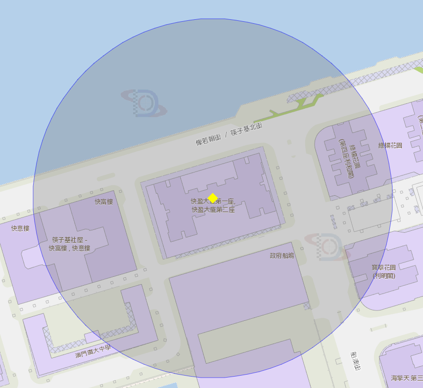 快盈大廈第一座附近風險區域100米半徑範圍