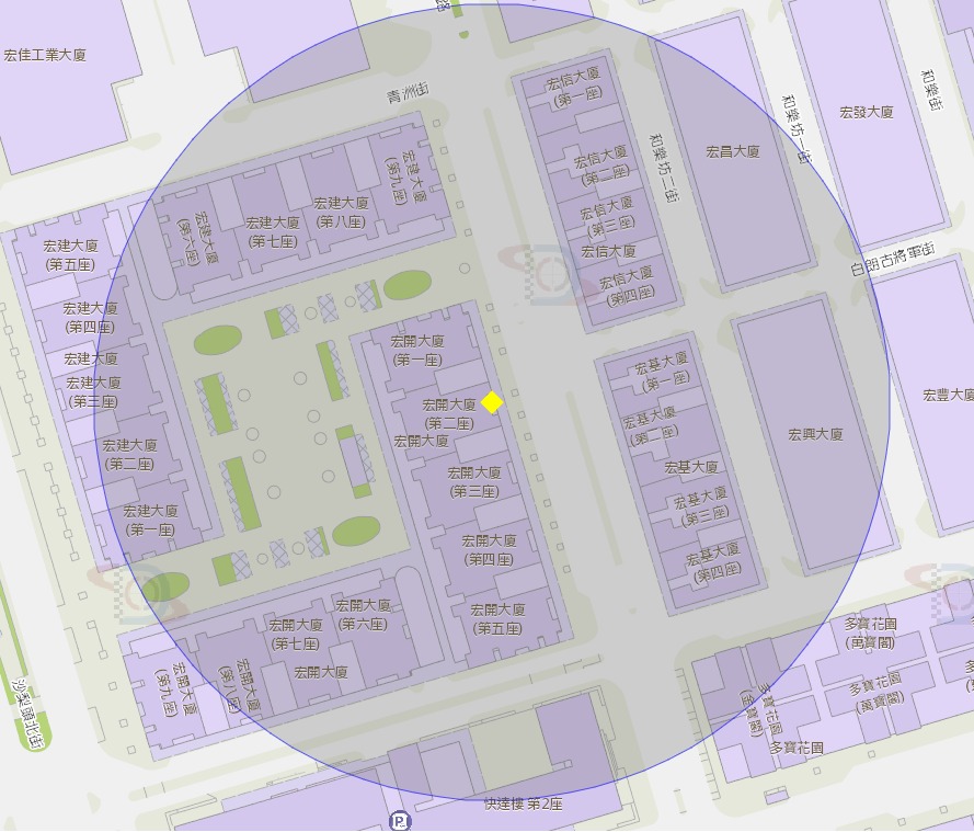 快達樓停車場附近風險區域100米半徑範圍