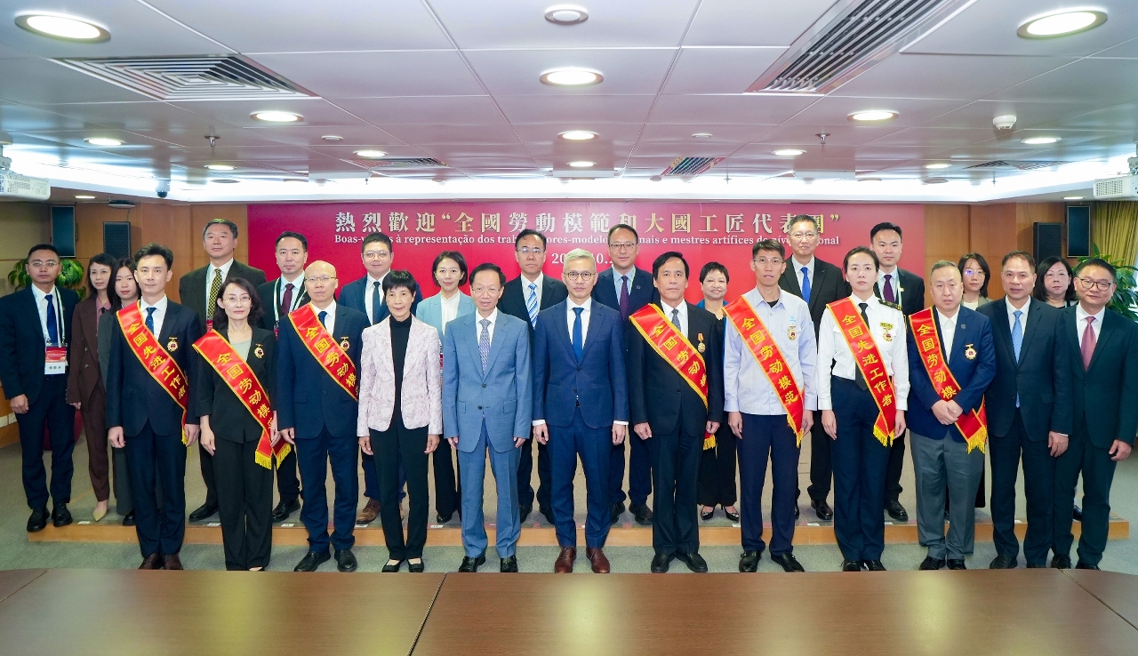 戴建業代表澳門特區政府,對代表團訪澳表示熱烈歡迎,並向全總成立100周年致以祝賀。戴建業表示,希望通過代表團訪澳的系列活動,讓本澳各界特別是廣大勞動者,深刻領會勞模精神、勞動精神與工匠精神,在各自崗位上追求卓越,為澳門發展貢獻力量。同時,代表團的勞動模範、大國工匠均是來自不同專業領域的傑出勞動者,其專業背景與澳門“1+4”經濟適度多元戰略佈局高度契合,期待代表團能為本澳相關產業的發展部署,提供寶貴經驗和建議。
