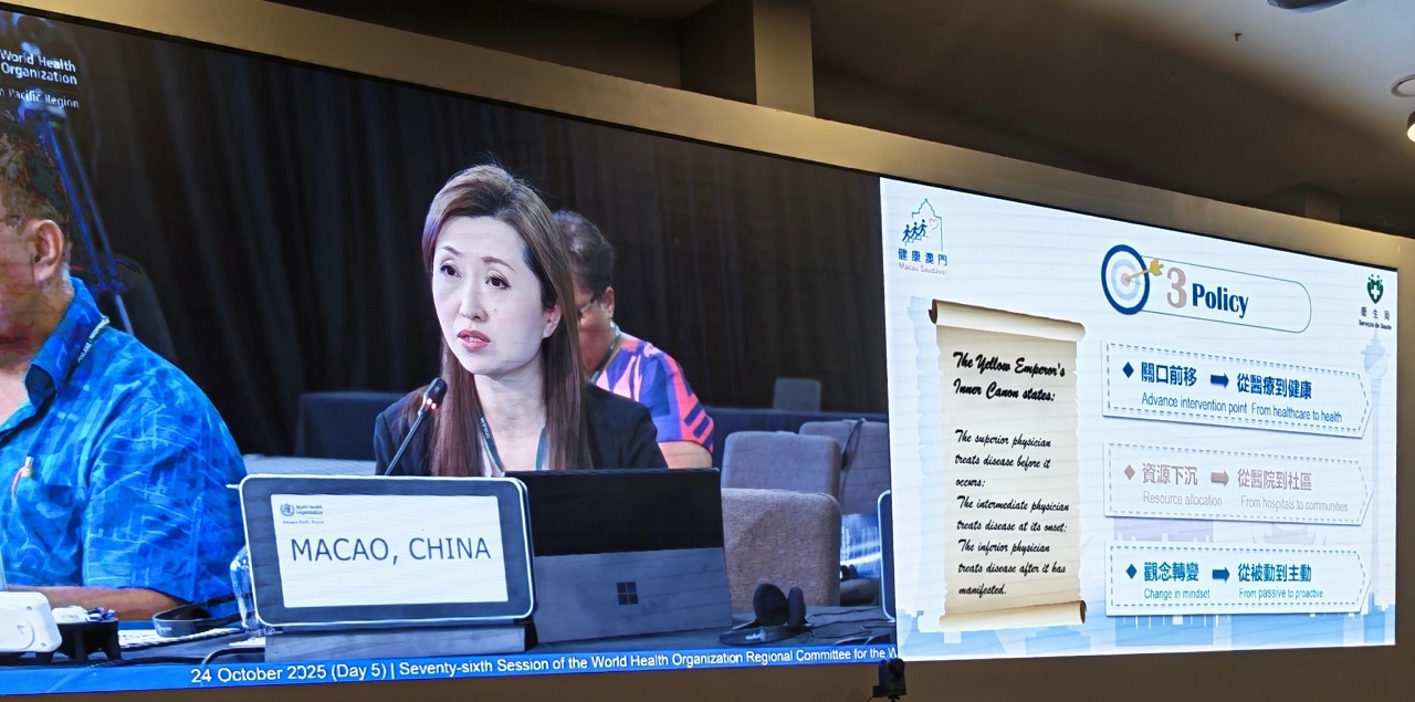 在斐濟楠迪舉行的第76屆世界衛生組織西太平洋區域(下稱“世衛西太區” )委員會會議期間,由澳門特別行政區政府衛生局局長羅奕龍率領的代表團,積極參與了多項議程及分享本澳在公共衛生領域取得的成果。