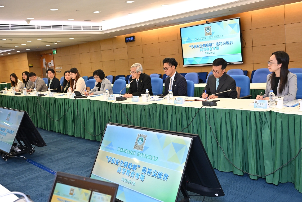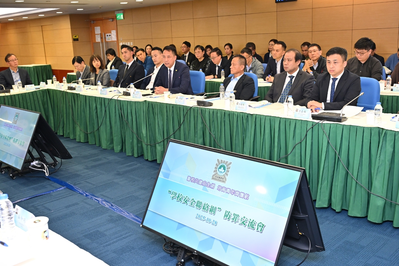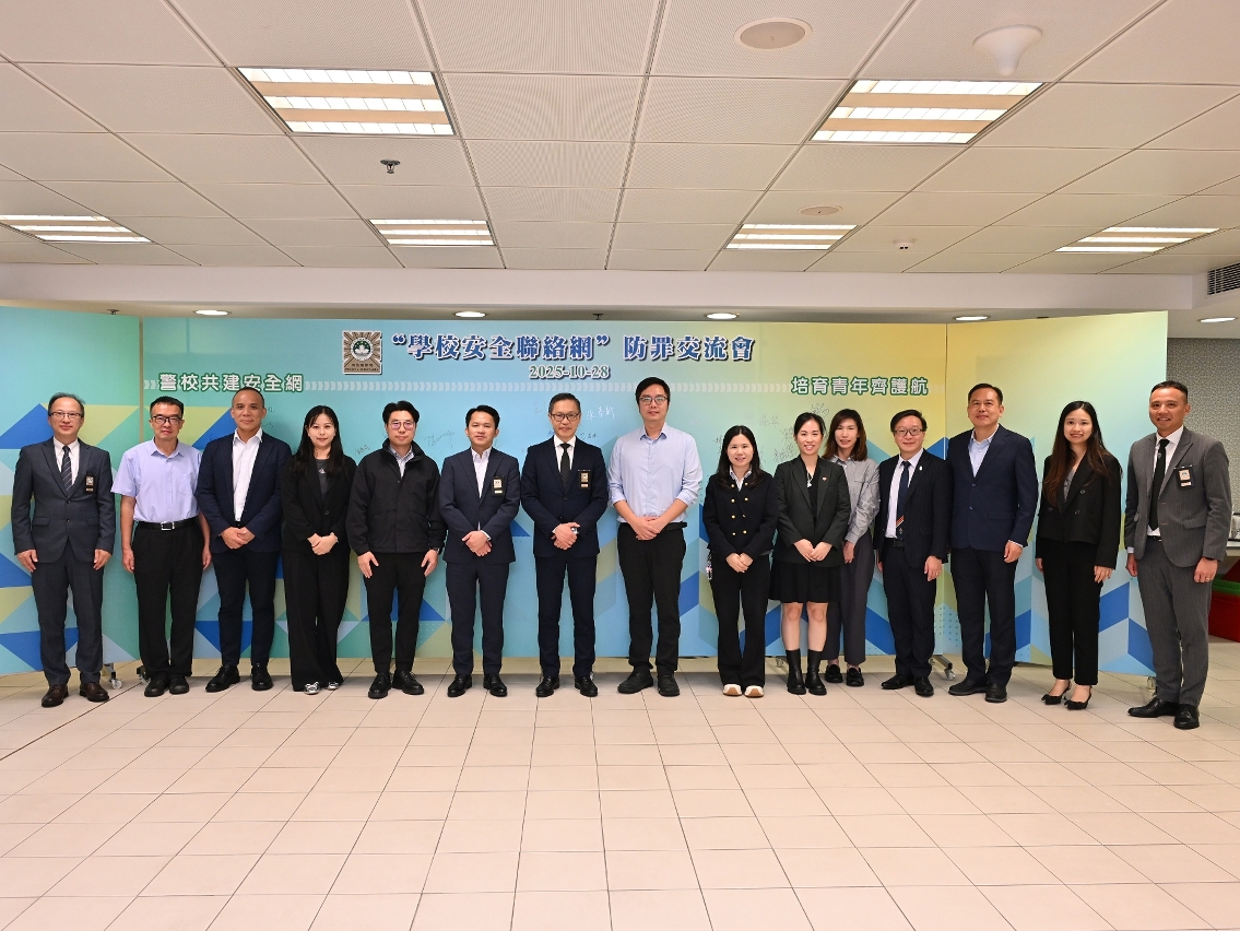 司法警察局舉行“學校安全聯絡網”防罪交流會,與本澳教育部門,高等教育、非高等教育、回歸教育學校(部),以及本澳教育及青年團體的代表,共商深化警校合作機制,推動防罪工作與時俱進,攜手為校園安全和青年成長護航。會上同時進行“警校合作齊防罪”嘉許儀式,39所學校因在過去一年積極參與司警局的青少年防罪宣傳工作獲頒嘉許狀。
