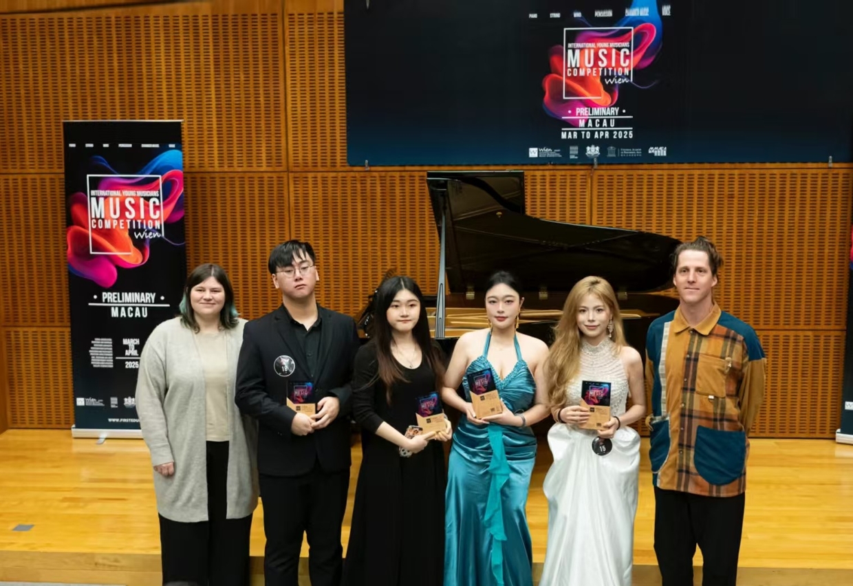 “2025年IYMMC維也納國際青年音樂家音樂大賽”初賽於澳門舉行,澳門理工大學藝術及設計學院音樂學士課程學生吳雙蓉、廖倍佳、宗小歡、蔡詩怡在“古典聲樂公開組”中發揮出色,勇奪金獎。廖倍佳再接再厲,代表澳門選手在此音樂賽事亞洲總決賽中,以穩定的演唱狀態和紮實的舞台經驗,榮獲“最高獎項”(亞軍),為澳門及澳理大爭光添彩。