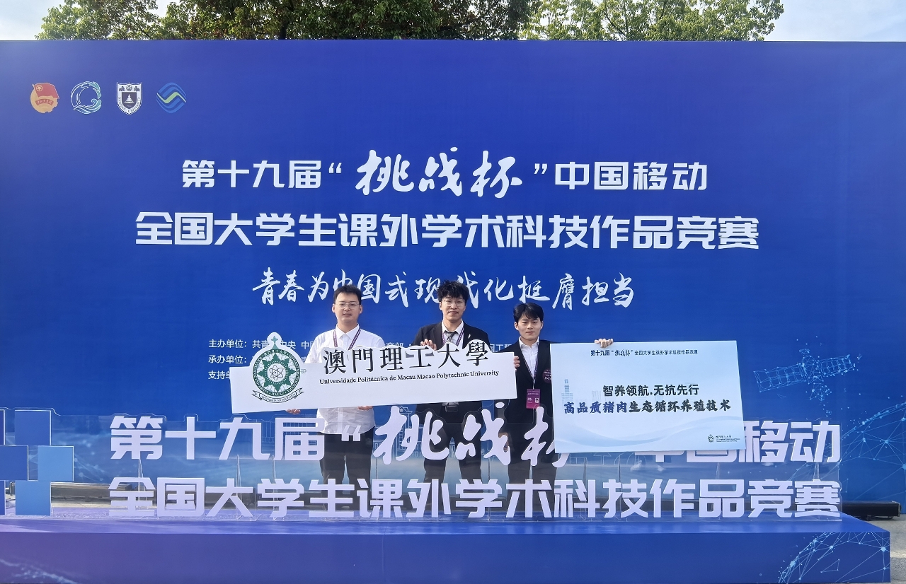 “挑戰杯”每兩年舉辦一次,分校賽、省賽、國家賽三個賽段進行。本屆“挑戰杯”競賽,覆蓋主體賽、“揭榜掛帥”專項賽、“人工智慧+”專項賽三大賽道,共吸引全國2700所高校的300多萬學生參加,共提交40萬個課外學術科技作品。澳門理工大學博彩旅遊教學及研究中心工商管理碩士研究生朱楚樂、張彬煒、張智臨,以及跨領域藝術碩士研究生郭益初組成的參賽團隊,在副教授蕭伃伶、教授賴嘉偉的指導下,憑藉創新項目《智養領航,無抗先行——高品質豬肉生態循環養殖技術》在全國總決賽中表現亮眼,最終榮獲全國三等獎,展現了澳理大學子在科技創新領域的實力,以及粵港澳青年攜手推動產業升級的協同效應。
