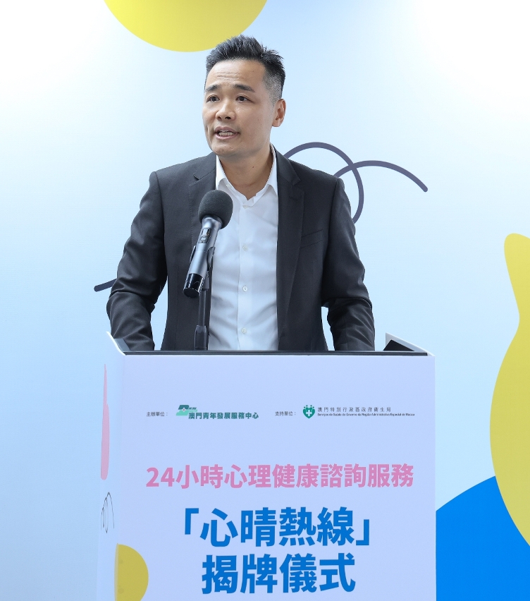 在儀式上,衛生局局長羅奕龍致辭時表示,社會文化範疇整合了衛生、教育、社會工作、文化、體育等領域資源,把健康元素融入所有公共政策,促進居民身心健康。“資源下沉”方面,推動心理健康服務融入社區醫療衛生服務體系,全澳9間衛生中心提供心理健康服務,並將心理健康服務延伸至社區,持續資助街總及婦聯,提供免費、便捷、專業的心理治療服務;聯合澳門青年發展服務中心推出“心晴熱線28712356”24小時心理健康諮詢服務。“關口前移”方面,通過“健康社區”計劃,結合線上多媒體宣傳與線下主題活動,並透過社區講座、校園宣傳、大眾體育、文化藝術等活動,幫助居民紓壓調節情緒。同時,推出“心晴快測”的心理健康自我評估工具,幫助居民掌握心理健康狀況。“觀念轉變”方面,鼓勵受情緒困擾者主動致電“心晴熱線28712356”或“明愛生命熱線28525222” 求助,推動居民建立“生命守門人”角色。