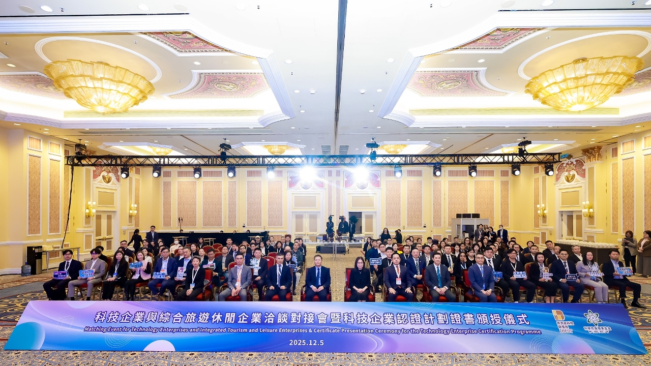 由經濟及科技發展局(下稱“經科局”)和科學技術發展基金(下稱“科技基金”)主辦的“科技企業與綜合旅遊休閒企業洽談對接會暨科技企業認證計劃證書頒授儀式”(下稱“對接會”)今(5)日假澳門威尼斯人舉行,是今年“全球智能機械與電子產品博覽會”(下稱“AIE”)的系列活動之一。經科局代局長鄭曉敏、科技基金行政委員會委員鄭冠偉、6間綜合旅遊休閒企業代表、獲頒授《科技企業認證計劃》認證證書的科技企業,以及AIE“澳門創科館”參展企業代表等逾100人出席。