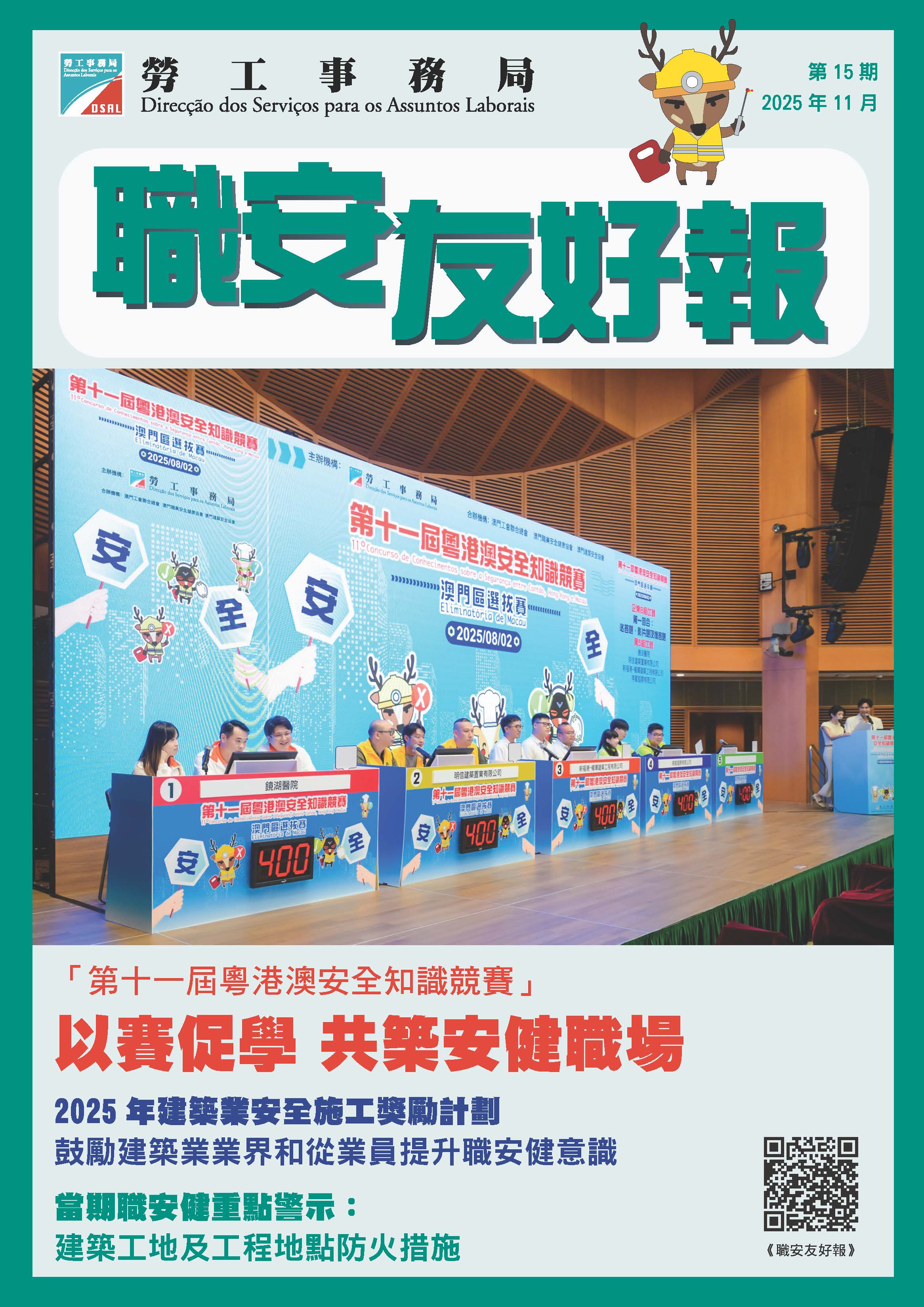 為讓業界了解更多本澳職安健資訊與最新發展,加強行業間職安健交流,勞工事務局(下稱“勞工局")定期出版《職安友好報》宣傳職安健訊息,第十五期的《職安友好報》電子版已於勞工局網頁職安健天地專頁上架。