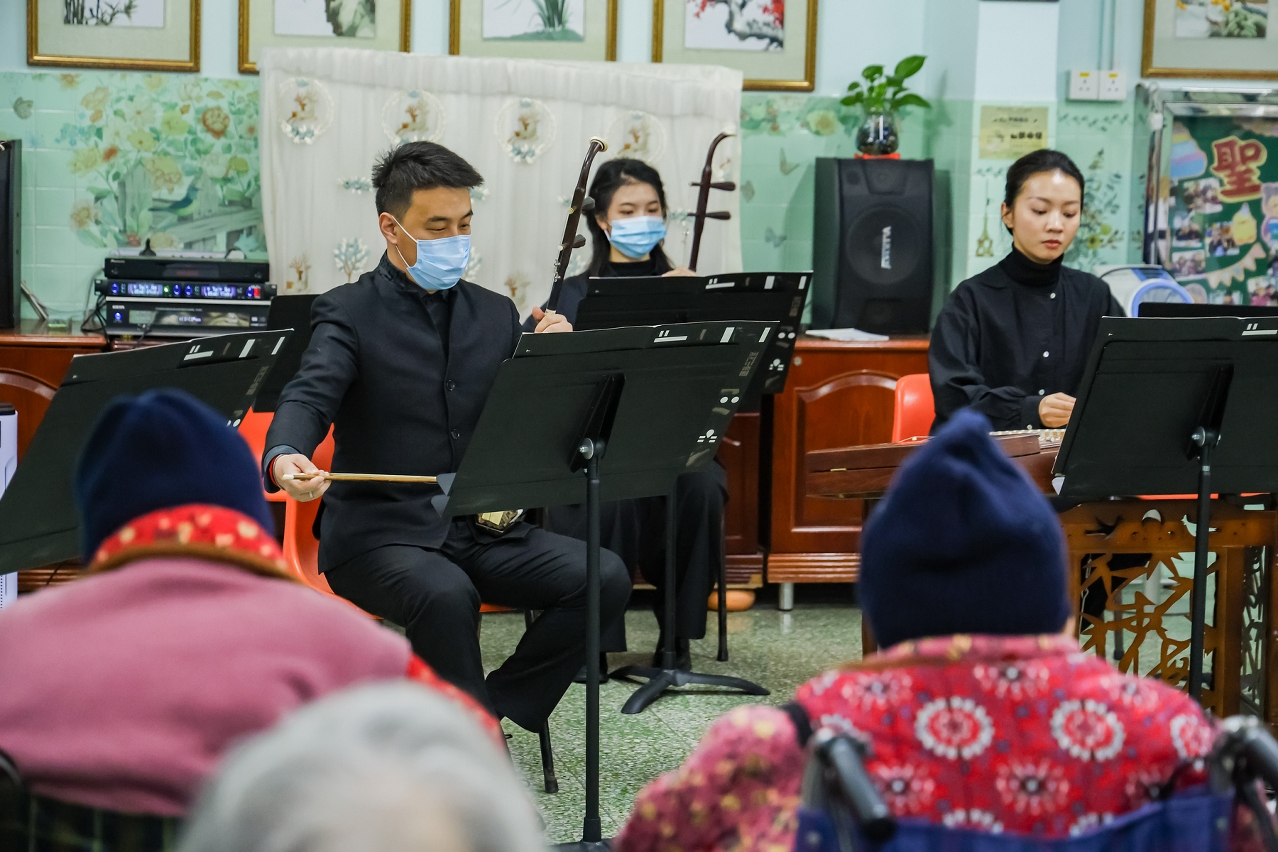 第二輪“愛社區樂同行”系列音樂會於今年1月21至23日期間,先後到訪扶康會朗程軒、瑪大肋納安老院、街總藝駿中心、仁慈堂安老院、悅暉護養院、聖瑪利亞安老院,為長者們帶來歡悅喜慶的中式經典與充滿異國風情的曲目,更演繹農曆新年應節樂曲《步步高》等,提早為各位長者送上新春祝福。演出洋溢溫馨融洽氣氛,廣受社區長者歡迎。