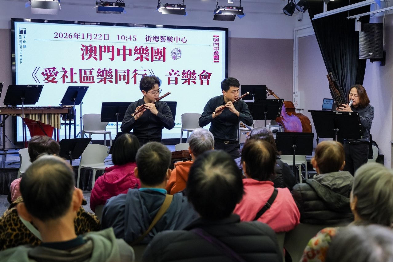 澳門中樂團冬日舉行多場系列音樂會,分別走訪多所院舍與社區中心,以及澳門天主教聖若瑟勞工主保堂,以悠揚樂韻溫暖社區,與近400名市民及長者共度充滿藝術氣息的冬日午後與晚上。