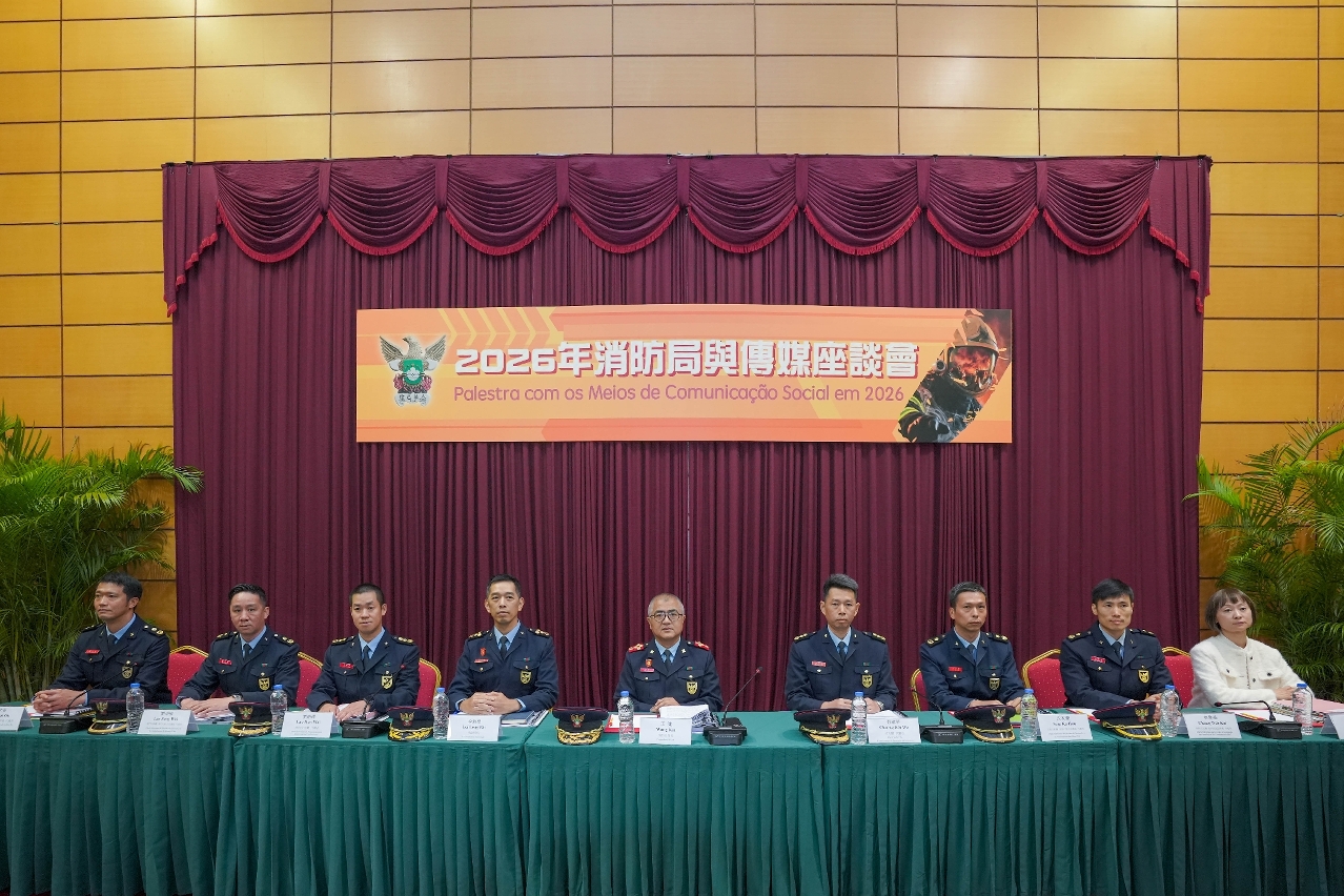 消防局於2026年2月6日在消防局總部暨西灣湖行動站舉辦2025年全年工作數據發佈及2026年傳媒座談會。座談會由消防局王健局長主持,李龍傑代副局長及各主管級官員出席。