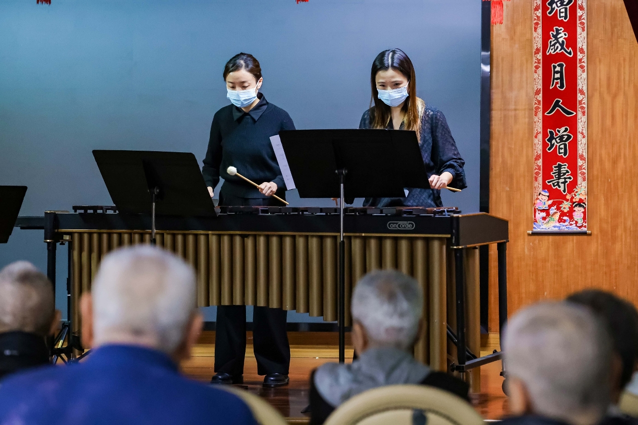 樂團分別到訪悅暉護養院、頤安護老院、頤安(逸麗)護老院、華暉康復綜合服務中心、伯大尼安老院、頤安護老院(雅新)、黑沙環明暉護養院及協同特殊教育學校,以敲擊樂演繹多首家喻戶曉、喜慶歡騰的節日樂曲,包括耳熟能詳的《恭喜恭喜》《甜蜜蜜》及充滿節慶氣氛的《財神到》等,氣氛熱鬧歡欣。除音樂表演外,亦安排歡樂的互動環節,讓長者及學生拿起樂器一同參與演出,感受音樂的趣味。