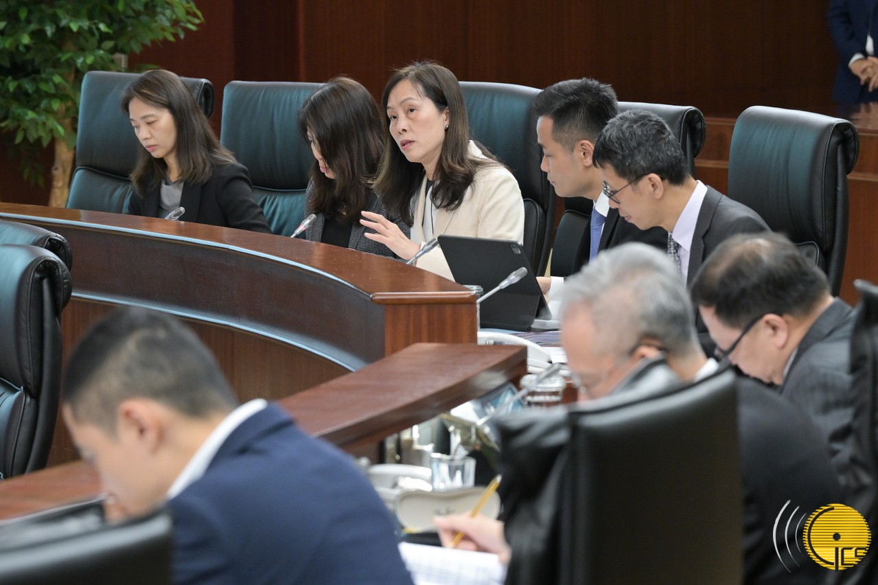 The Secretary for Social Affairs and Culture, Ms Ao Ieong U, attends a plenary session of the Legislative Assembly to take questions raised by Legislative Assembly members.