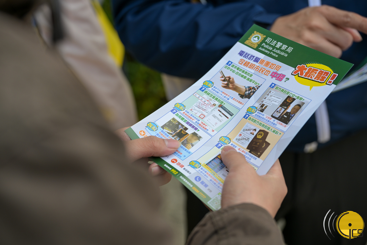 • In order to create a safe and secure environment for Macao's residents, members of the Judiciary Police not only shoulder the important task of fighting crime, but also often go into the community to promote crime-prevention and fraud-prevention information.